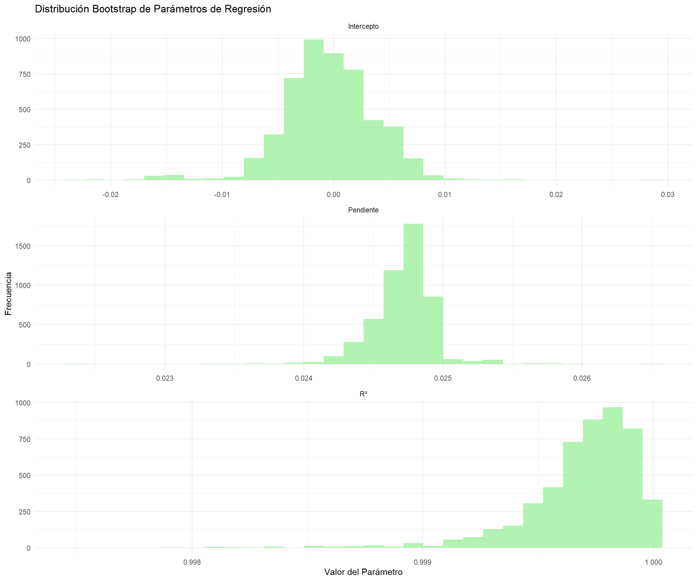 labs(title = "Distribución Bootstrap de Parámetros de Regresión",