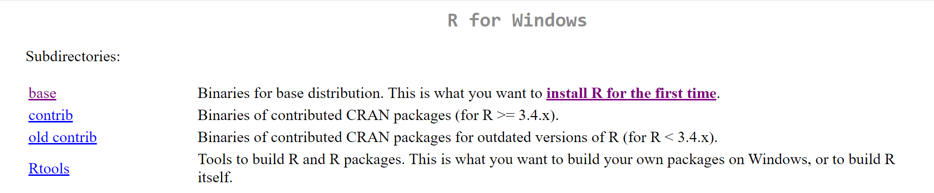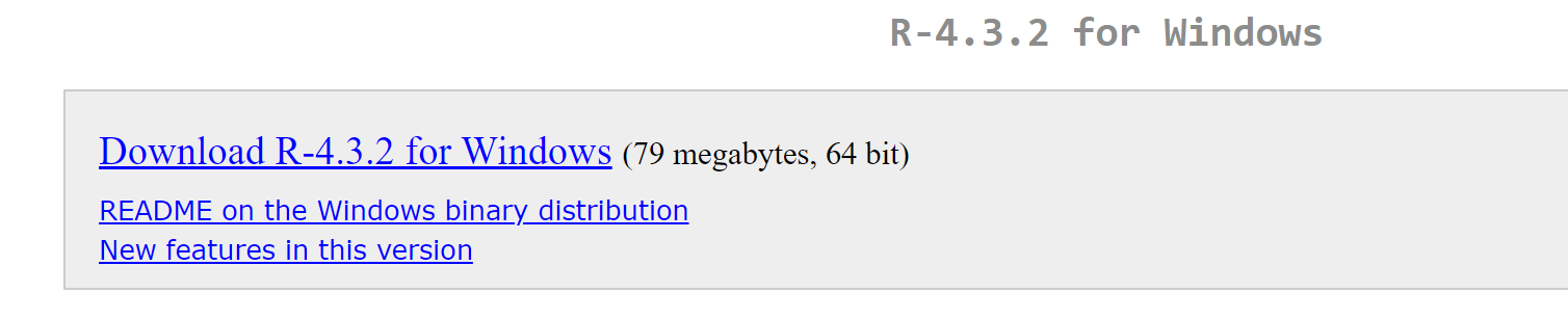 Finalmente, pinche en Download R-4.3.2 for Windows y comenzará la descarga.