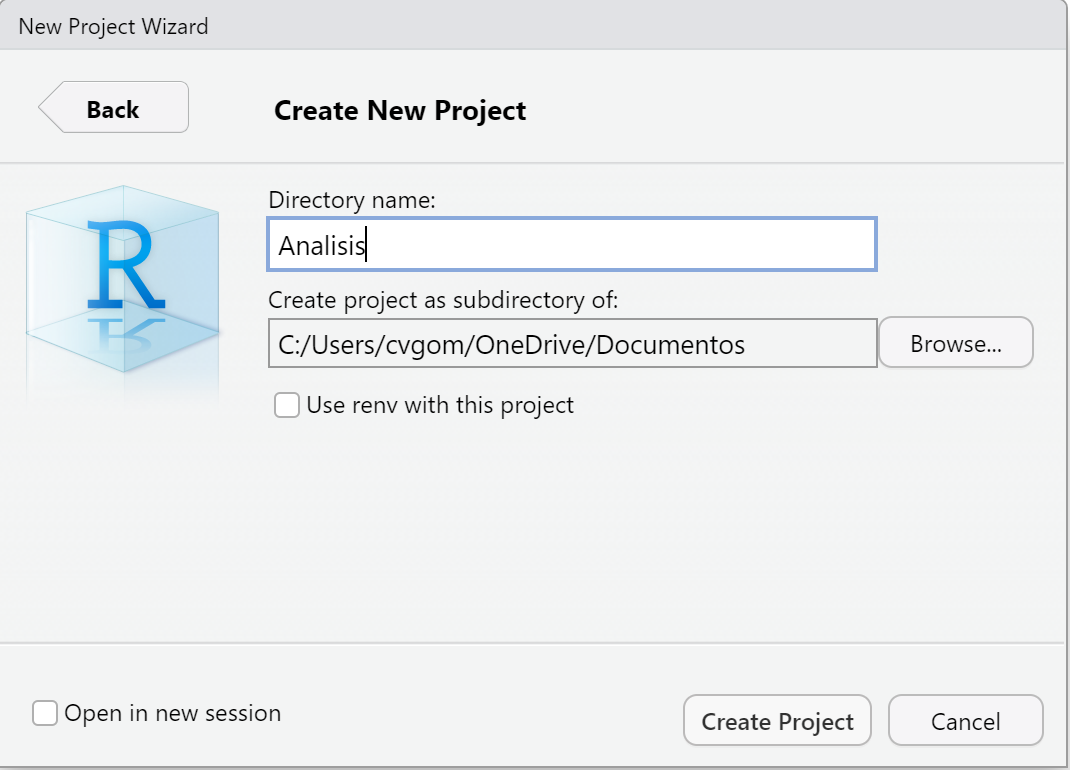 Un proyecto es una manera de empaquetar todos los archivos que se generarán cuando analice sus datos: archivos de Excel, figuras, análisis estadístico, reportes en PDF, etc. Por lo tanto, si Ud. quiere replicar sus análisis en otro laptop o si desea enviar sus análisis a una colega, basta que le envíe solamente la carpeta del proyecto.