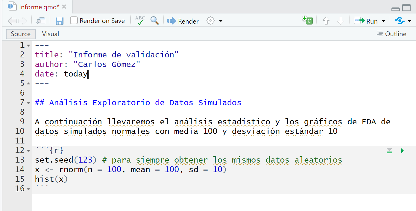 Hasta ahora, su archivo informe.qmd debe lucir más o menos así: