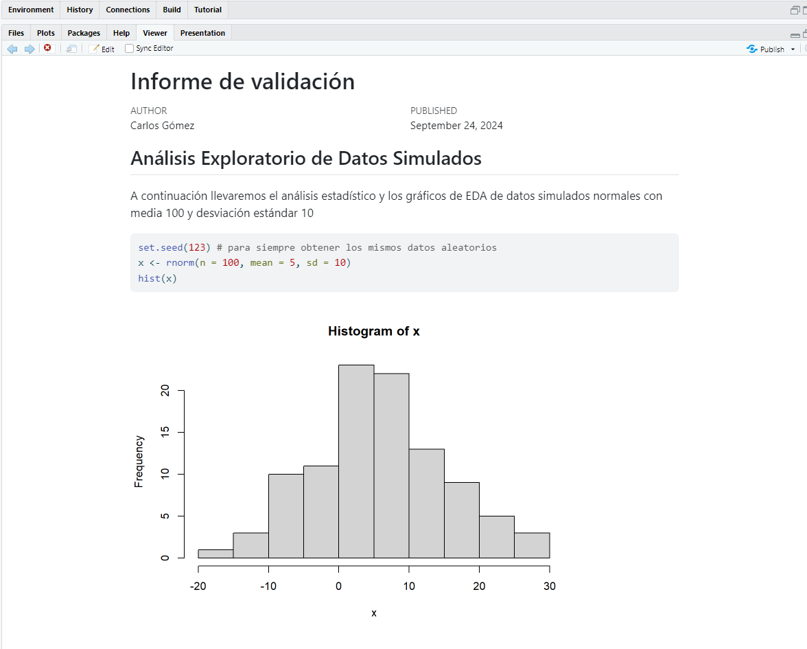 Es decir, Quarto le permitirá escribir su informe o presentación junto con los análisis estadísticos en un MISMO DOCUMENTO. Por lo tanto, ya no necesitará caminar por el vía crucis del COPIAR Y PEGAR.