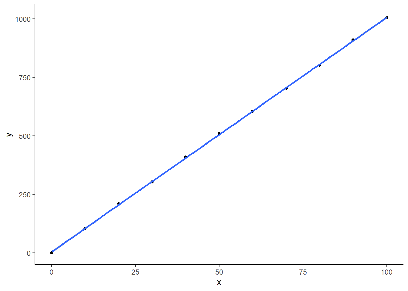 F-statistic: 7.141e+04 on 1 and 9 DF, p-value: < 2.2e-16